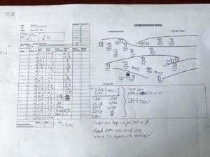 Real example of a used drop chart for a .308 rifle for Chobam range at Bisley