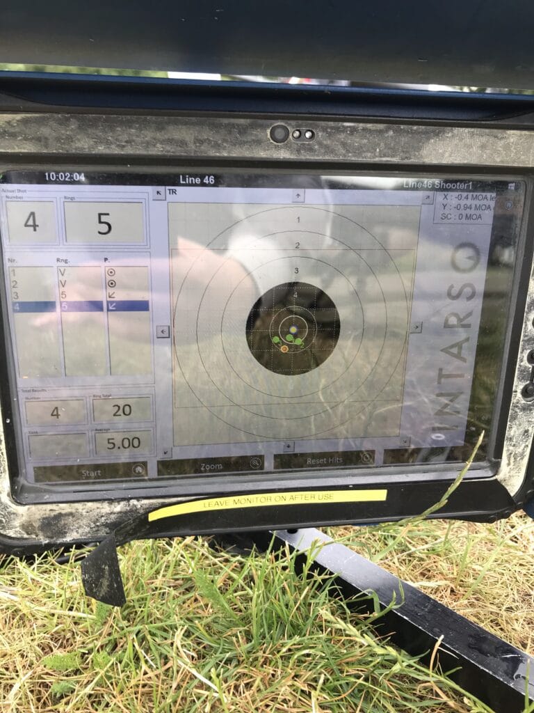 Screen showing hits on electronic target at 1000 yards