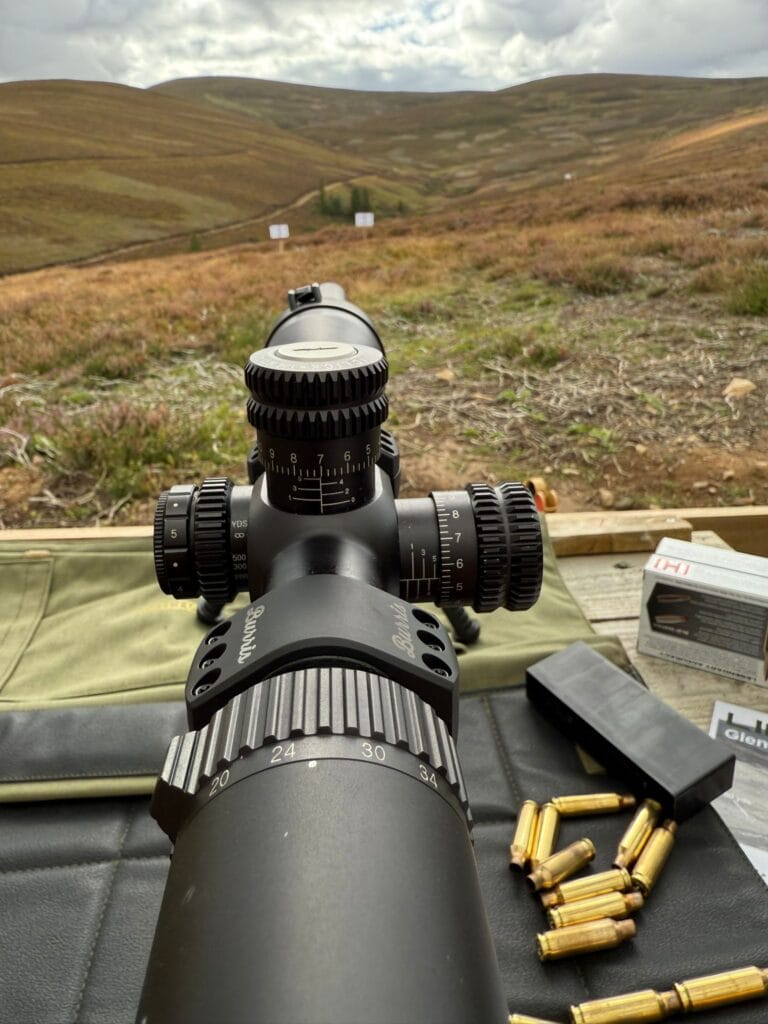 The range has steel targets from 280 yards all the way out to 1760 yards – the full mile. With a no danger area backstop targets can be engaged at any distance at any time. We started cracking on immediately and with five firing points, we soon had plenty of rounds going downrange. Each shooter was aided by a spotter calling the fall of shot and looking out for errant sheep and deer – fortunately the only deer we saw was the steel target variety.